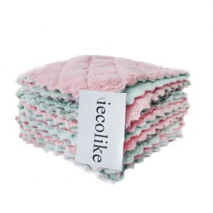 iecolike 10 Pack Kitchen Cloth Dish Towels, Premium Dishcloths, Super Absorbent Coral Velvet Dishtowels, Nonstick Oil Washable Fast Drying