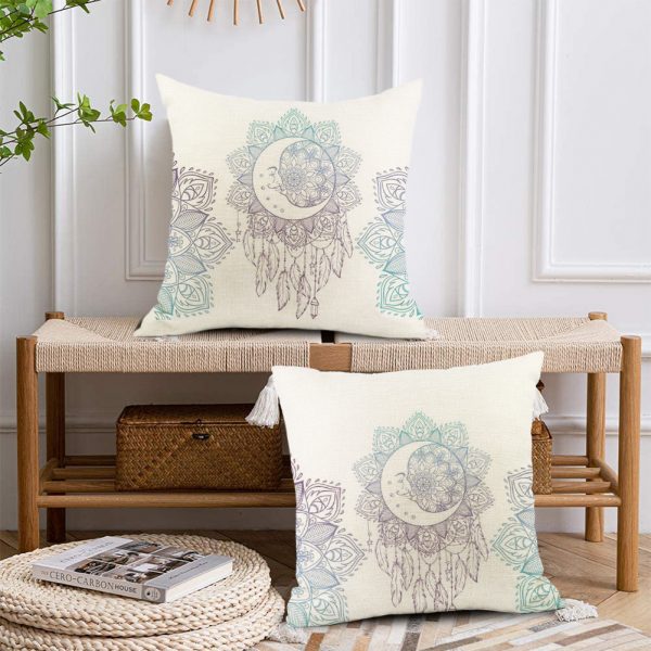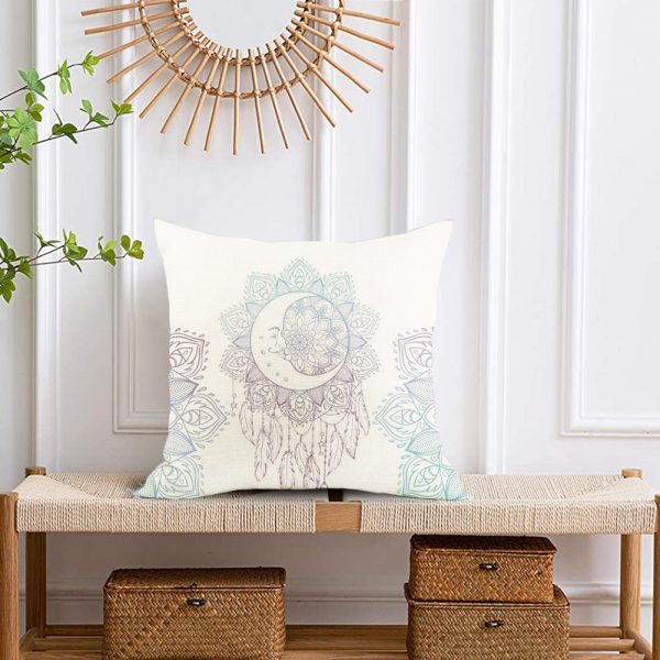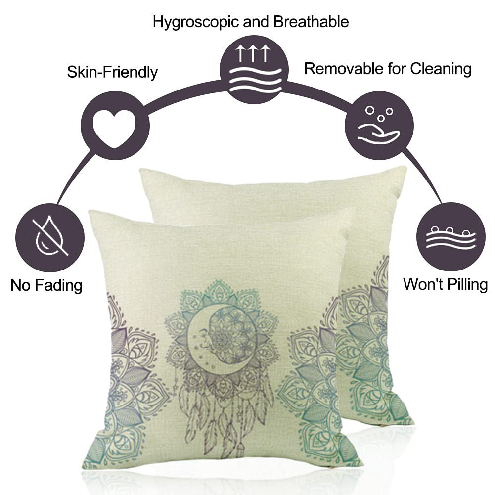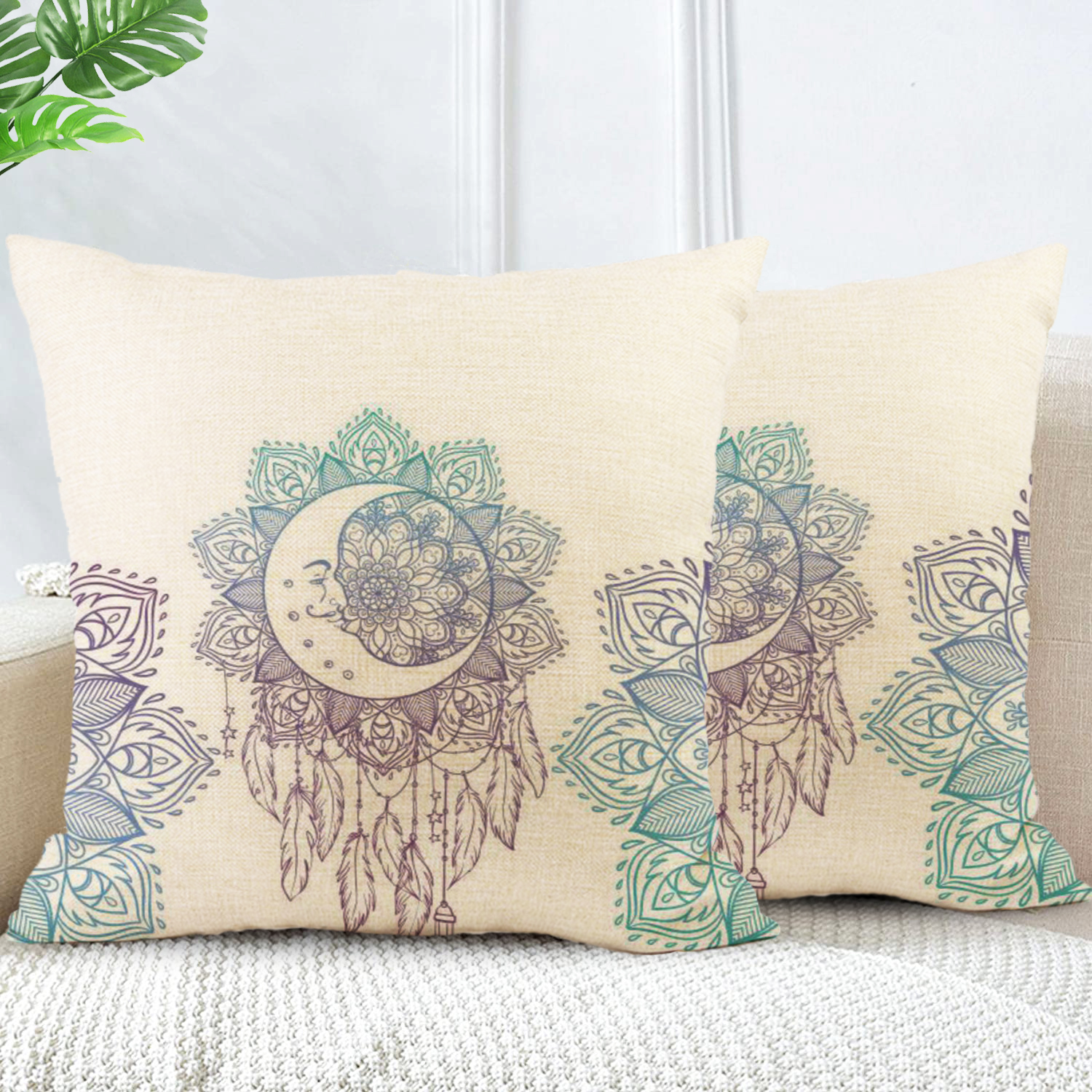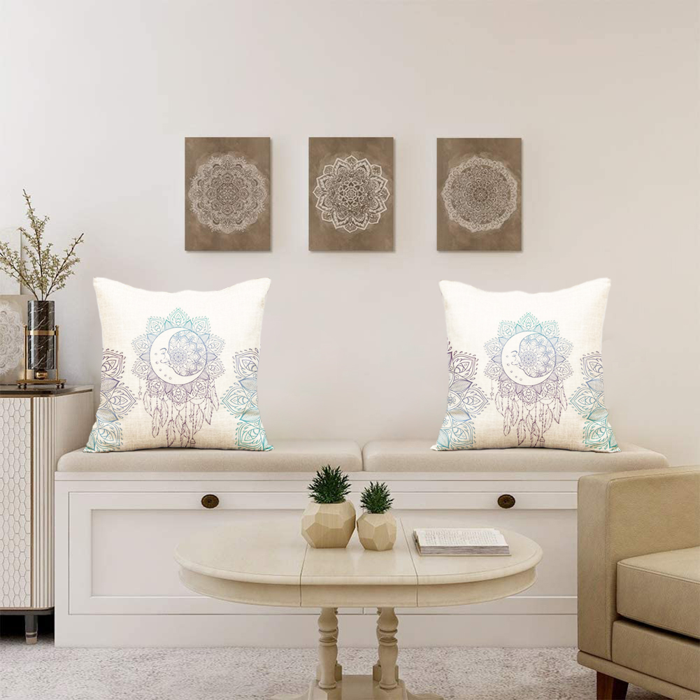 floraland Decorative Throw Pillow Covers 18 x 18 Inch Set of 2 Moon Mandala Dream Catcher Cushion Covers Linen Fabric Pillowcases for Home Sofa Bed Car Decor