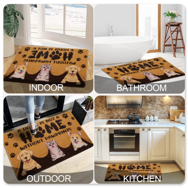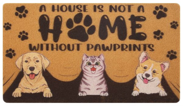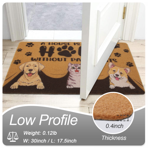 Solid Durable Manufacture : The door mat is made of high quality imitation coconut palm, durable enough to last for years. Color will not fade and will stay vibrant no matter how many times you wash and dry. For all you pet lovers, a loving dogs and cats paw pattern on the door mat fills your home with warmth and makes your pets feel at home