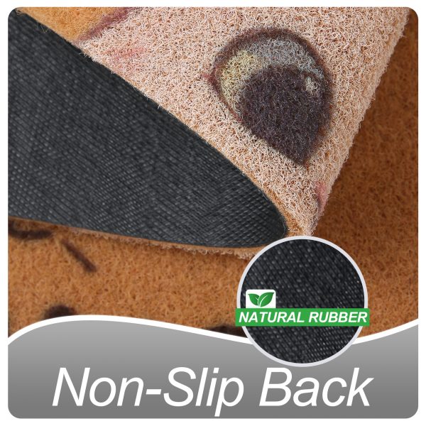 Non-Slip Back : The non-slip backing design of our outdoor doormat prevents falls while keeping the outside doormat in place. Open the door rug entirely and place it on an even, flat, dry floor. The doormat must be placed on a dry surface during use. A wet surface may result in slippage