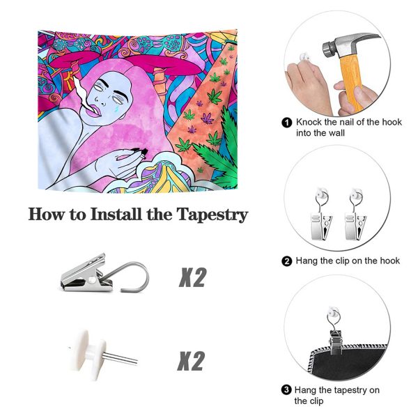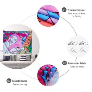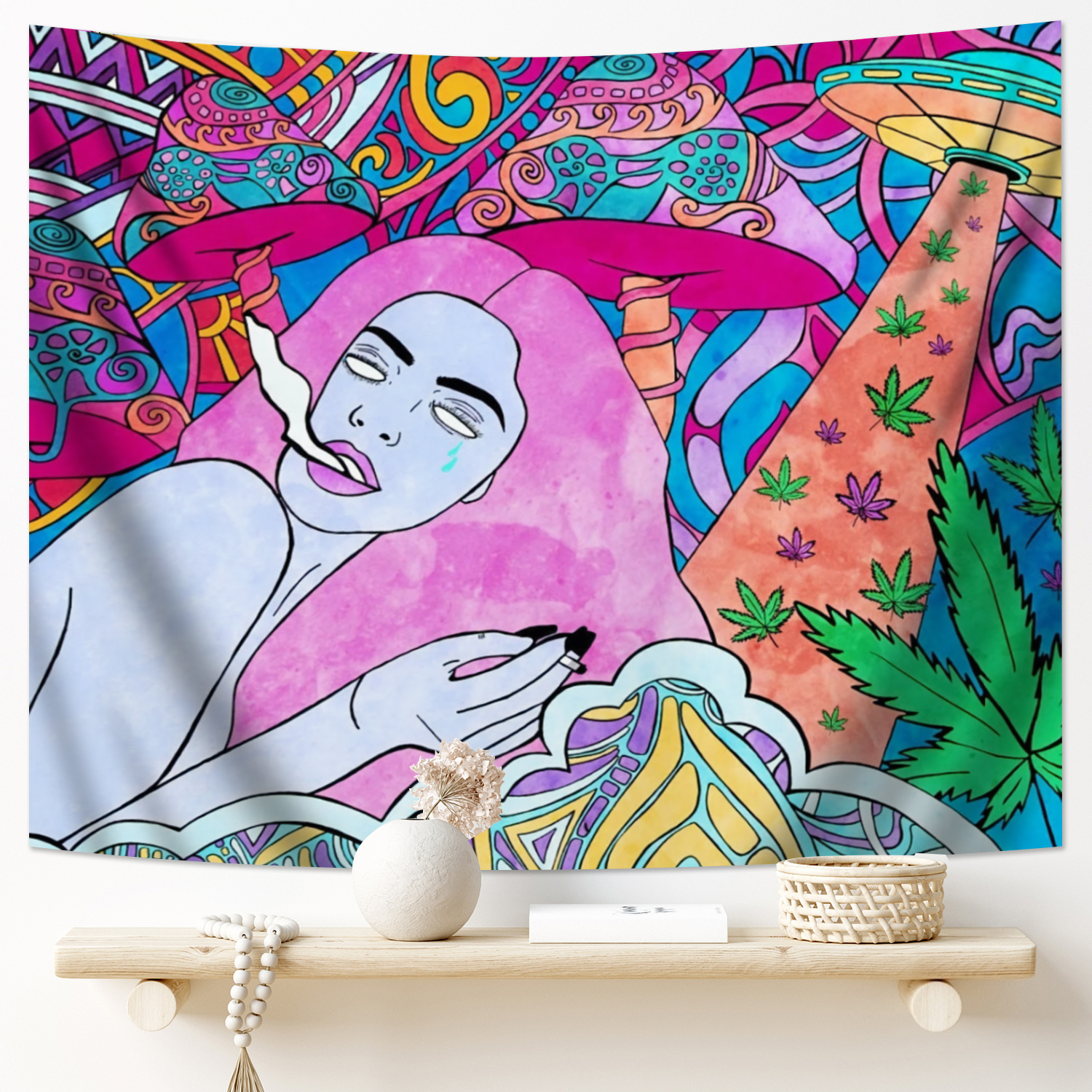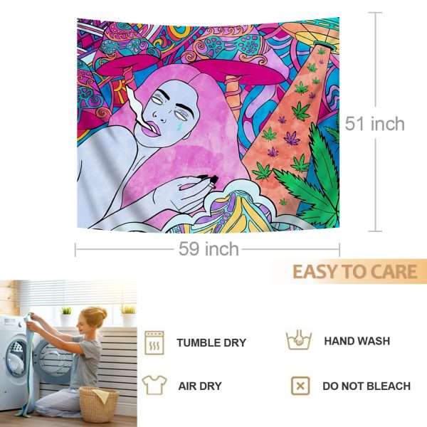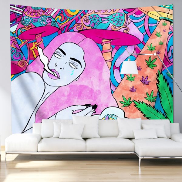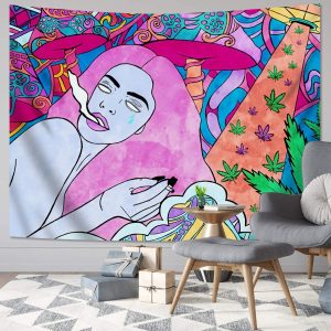 Trippy Colorful Mushroom Tapestry Wall Hanging Pink Girl Tapestries Aesthetic Weed Wall Art Decor for Home Bedroom Bathroom (51.2×59.1 Inches)